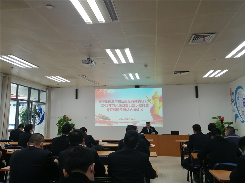 為深入學習貫徹黨的二十大及二十屆中央紀委二次全會會議精神,推進公司全面從嚴治黨和黨風廉政建設(shè)工作,增強全體黨員干部的廉潔自律意識,營造風清氣正的廉潔過節(jié)氛圍,2023年1月17日南寧軌道地產(chǎn)物業(yè)公司黨支部在東站樞紐培訓室召開2023年黨風廉政建設(shè)警示教育暨春節(jié)前集體廉潔談話,公司全體黨員、入黨積極分子、中層管理人員共47人參加了此次會議。